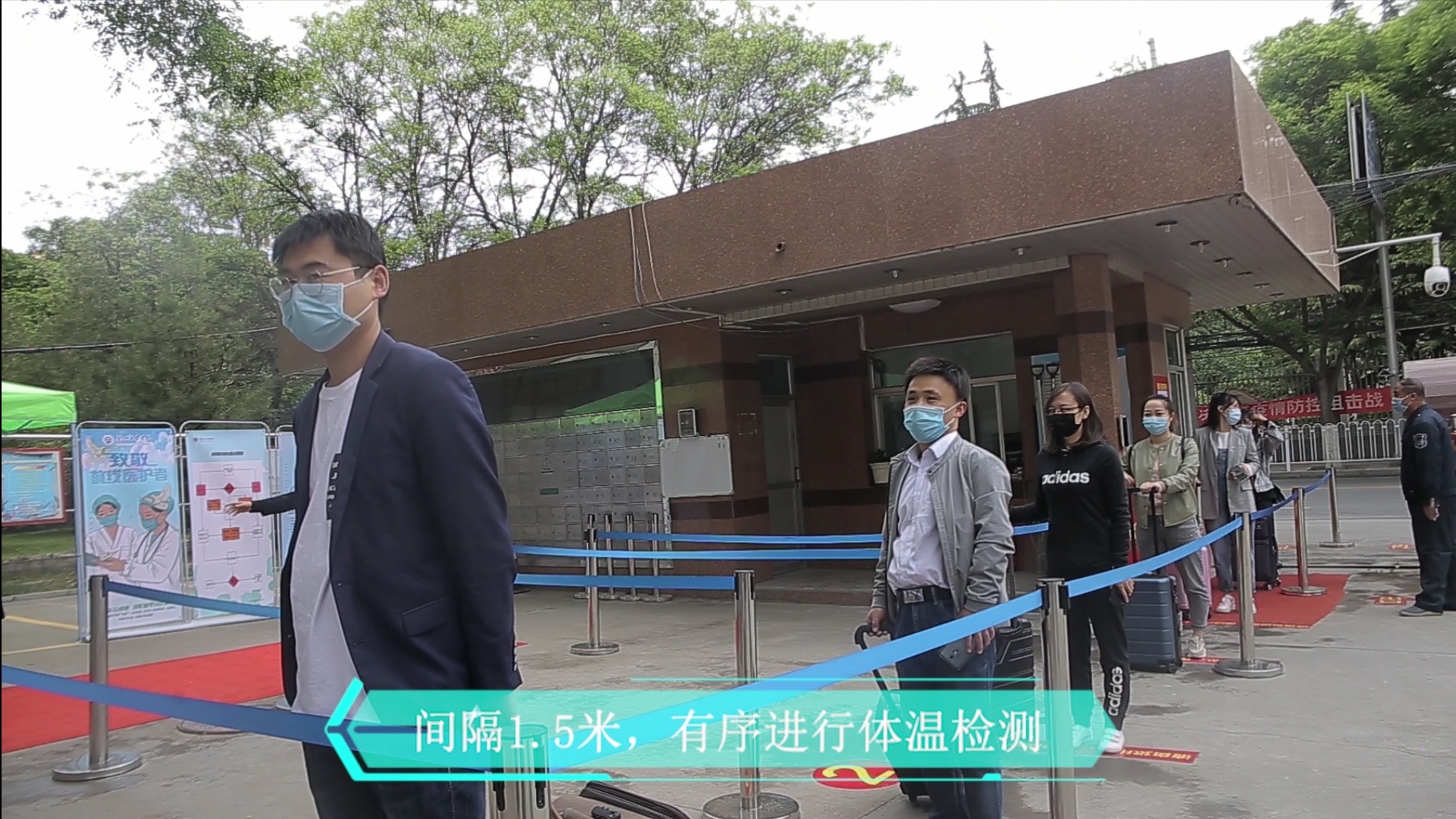 按照“预防为主、联防联控、及时处置”要求,本次演练对学生火车站接站、入校、进入公寓、错峰就餐、突发应急处置5个场景进行了模拟。每个场景均设有醒目标识,配备酒精、消毒液、体温计、口罩等防疫物资,学校设有临时隔离区、发热分诊点。志愿者按照“一核二测三消杀四通过”流程(检测体温、核查健康出行码+核对身份信息、行李消杀)上接站车、入校和宿舍入住;就餐人员在测温、消毒后进入食堂,并按照引导标线有序排队取餐。同时,每个场景设置了学生体温异常等特殊情景处置。每到一处,学校领导听取相关人员汇报,并就工作细节和存在问题交换意见,提出整改要求。