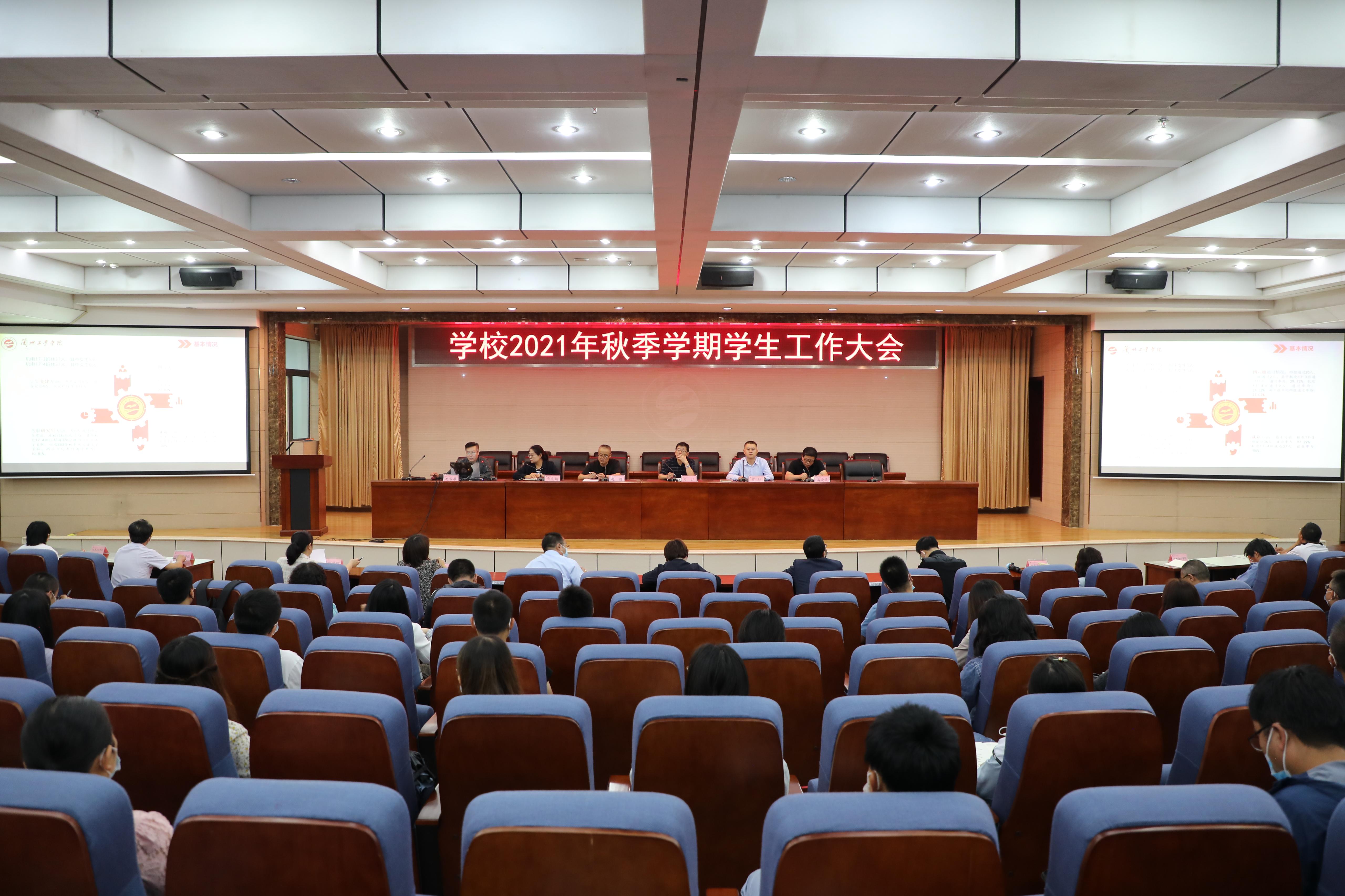 9月14日下午,学校在第三学术报告厅召开2021年秋季学期学生工作大会,副校长马江出席会议并讲话。学工部、武装部、大学生就业指导中心、团委、公寓管理中心负责人,各二级学院党委(党总支)书记、主管学生工作副院长、全体班主任、辅导员参加会议。