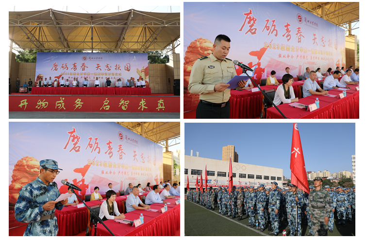 相关部门负责人、各学院党委(党总支)书记、全体承训教官、2023级辅导员及全体新生参加了仪式。