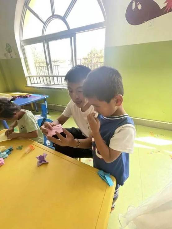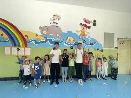 7 月 8 日,实践团成员再次来到胡林家乡中心幼儿园与幼儿园小朋友共同携手作风车、叠爱心,进行告别。相信小朋友在阅读中学习新知、收获快乐,同时我们也收获了互相学习与共同进步的机会。由于疫情原因暑期社会实践活动提前结束,但此次大学生暑期社会实践任务已圆满完成。在这短暂的实践中,实践团的成员一起工作、一起讨论、一起调研、一起复盘、一起累过、一起笑过。我想这就是团队精神,这就是我们最值得回忆的最难忘的经历。当我们看到孩子们在我们的课堂上收获知识的面容时,内心一直荡漾着志愿服务过程中的那份担当与责任、荣誉与爱心!正所谓“纸上得来终觉浅,投身实践觅真知”。我们一定会把这次的所得实践知识与技能运用到以后的学习和生活中去,承担起未来建设国家的重任,追求进步,刻苦求知,勤于实践,要做一个立大志、明大德、成大才的新时代大学生。