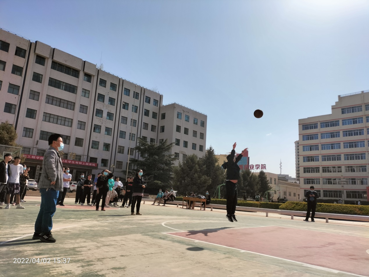 “张瑞财,加油,再投中一个,胜利就非我们队莫属”,北校篮球场上定位投篮选手们,个个精神抖擞、意气风发、努力拼搏,纷纷表示要比出好成绩,充分展现出团队良好的精神风貌。比赛精彩纷呈、气氛热烈,展现出了青年学子独特的青春与活力,快乐享受健身运动的乐趣。