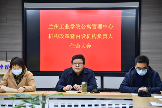2021年11月25日上午,公寓管理服务中心在创新创业学院一楼会议室召开机构改革暨及内设机构负责人任命大会,中心全体职工参会。中心主任高爱民强调:为进一步加强我校学生公寓工作,提前布局兰州新区新校区公寓建设,改革公寓管理中心内设机构,实现七里河校区与新区新校区无缝衔接,保障公寓资产管理、物业保障、宿舍管理、党团文化建设及宿舍先期心理介入等工作有效开展,充分调动工作人员积极性,经中心主任办公会讨论报请主管校领导同意现对中心内设机构及相应科室负责人进行调整。中心副主任王晓玲宣读《关于设置公寓管理服务中心宿舍管理办公室、公寓文化建设办公室的通知》文件、张磊宣读《关于司马斌等同志职务任免的通知》文件。