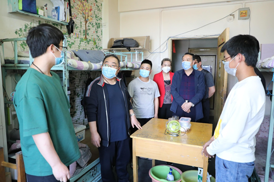 每到一处,校领导与返校学生亲切交谈,“同学你家是哪的?”“回来还适应吗?”“毕业设计做的怎么样了?”“请大家做好自身安全防护!”校领导亲切询问学生返校路途防护、返校后住宿饮食、学习生活等情况,并嘱咐他们一定要加强自我防护,遵守各项返校要求和校规校纪,认真完成学业,珍惜大学最后的宝贵时光,在抗击疫情中多读、多思、多观察,从中体悟对生命的敬畏,懂得逆行担当,扛起家国责任。