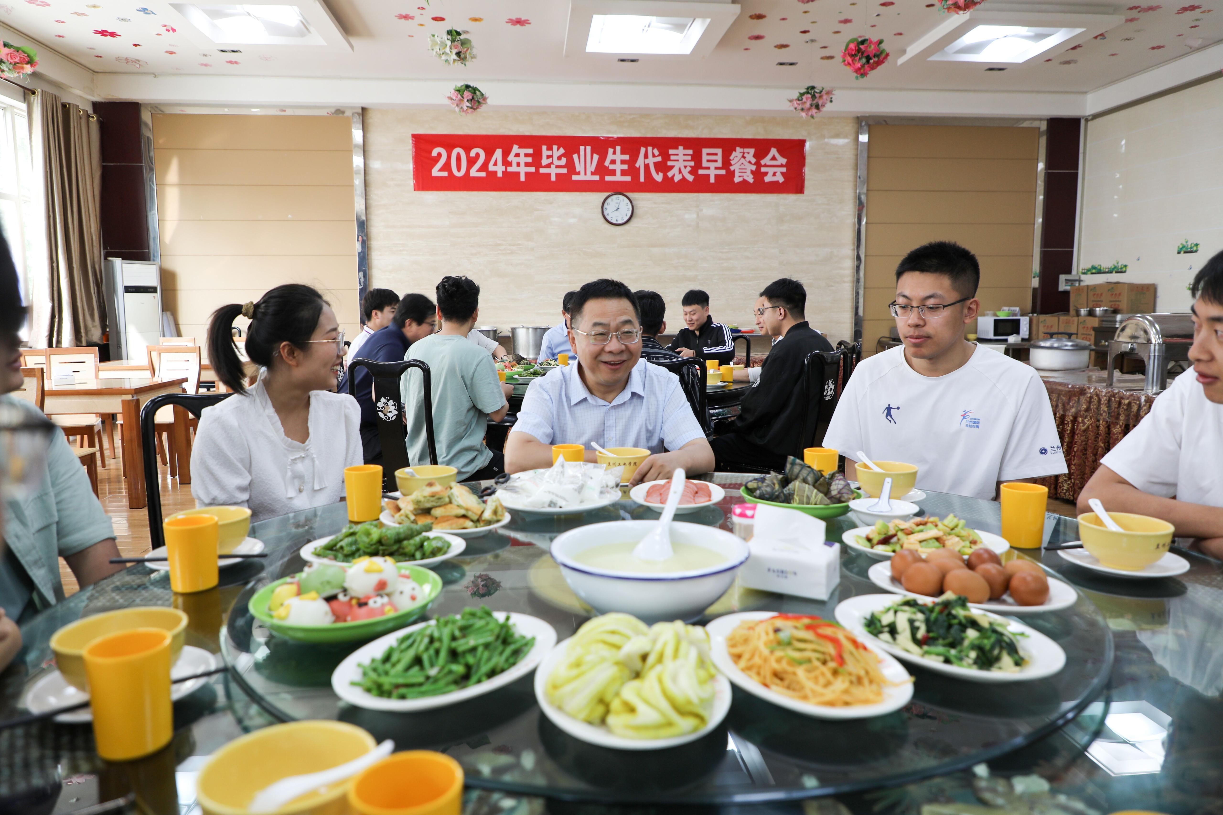6月7日,学校开展校领导走访学生活动暨毕业生代表早餐会。党委书记韦尧兵、校长刘新辉、副校长王佰成与2024届毕业生代表共进早餐,倾听学生心声,共话学校发展。