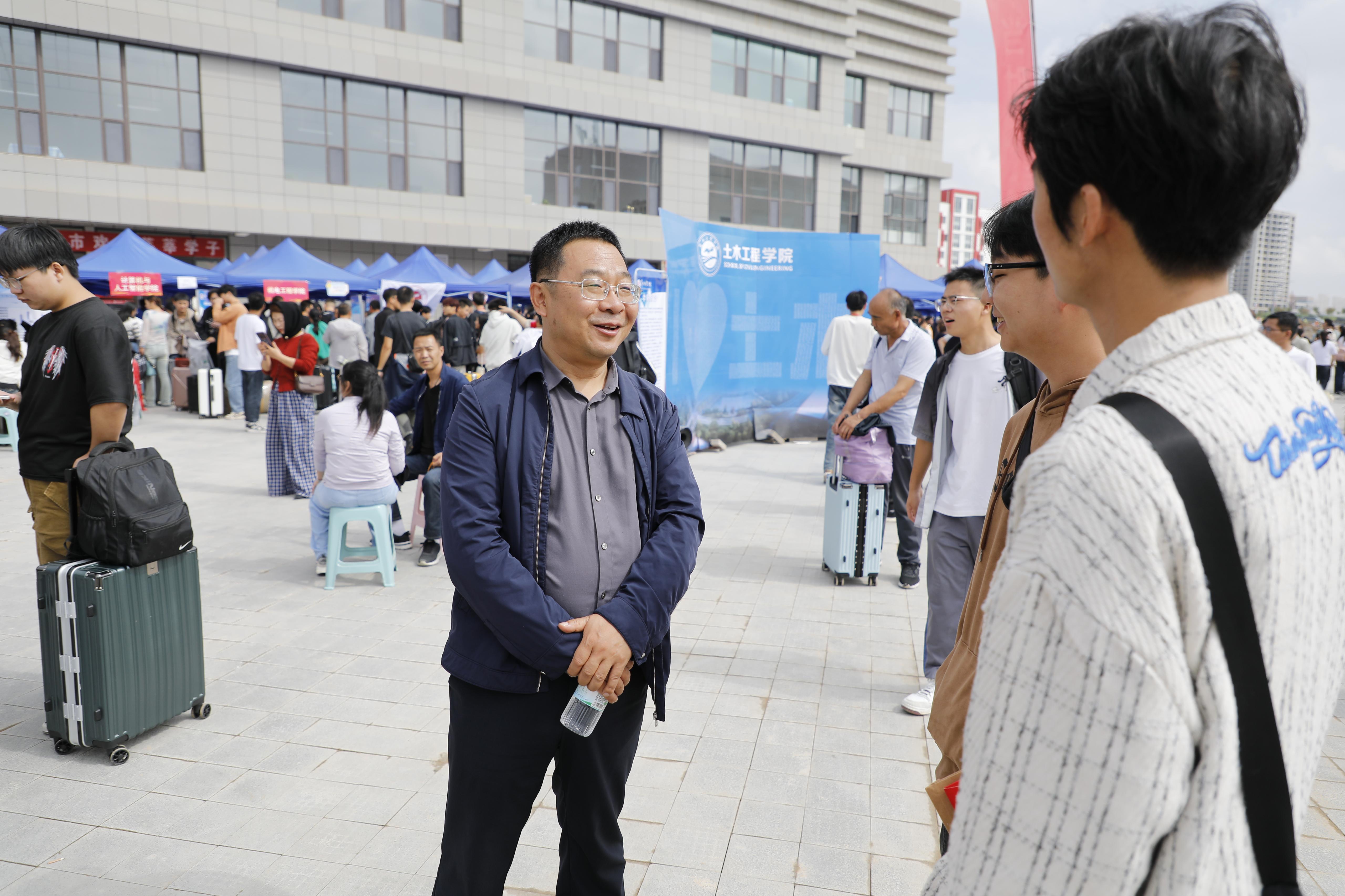 19日上午,校党委书记韦尧兵,党委副书记、校长刘新辉等校领导在相关职能部门负责人的陪同下,分赴各个迎新点看望报到新生及家长,与部分新生家长进行交流,听取他们在新生报到过程中的实际需求以及对学校工作的意见建议,并向2024级新同学介绍学校概况,勉励大家在兰州工业学院这片青春的热土上乘风破浪、勇敢追梦。校领导对参与接站工作的师生员工表达了慰问,叮嘱他们坚持用热情周到细致的服务,让学生舒心、家长放心。