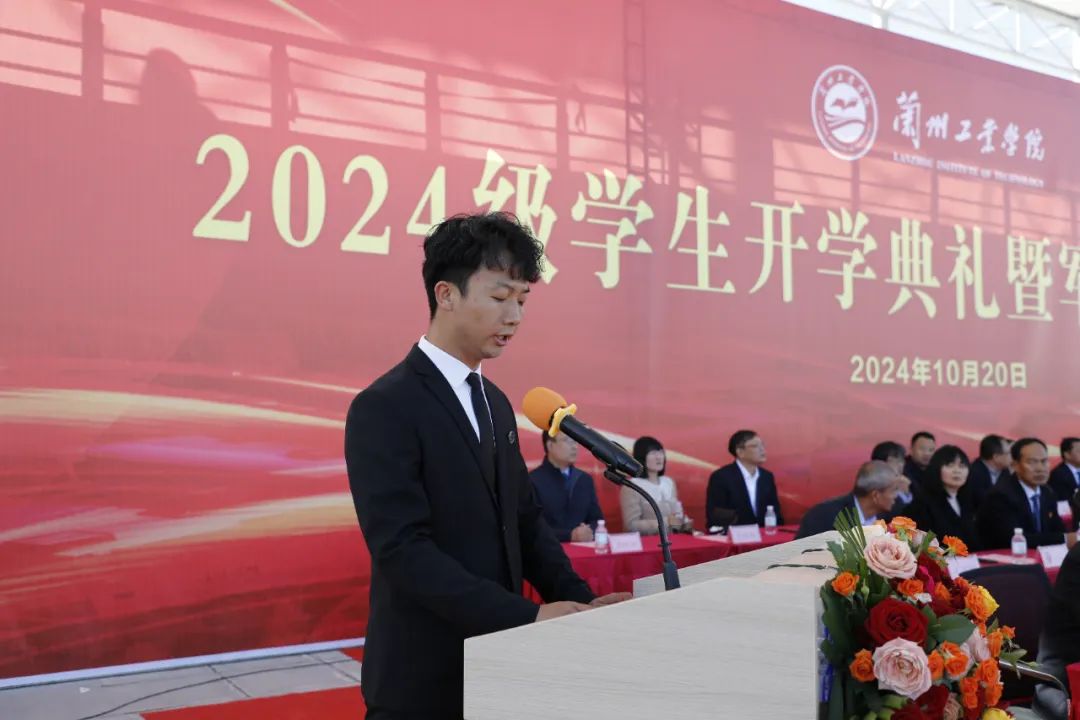 刘新辉以“云程发轫,彩练飞舞”为题,以“红色、金色、绿色、紫色”四种颜色对同学们提出了希望。一是希望同学们赓续“红色”血脉,让青春点燃爱党爱国的火焰。从烽火硝烟到和平年代,红色血脉与工业基因始终在兰工院的校园里赓续相传。时代赋予了大家实现中华民族伟大复兴的崇高使命,要继承先辈遗志,赓续红色血脉,像历届工院学子一样,坚定理想信念,坚守报国初心,厚植爱国爱党情怀。二是希望同学们珍惜“金色”年华,让青春绽放奋斗的光芒。在学校喜迁新址之际,同学们要更加珍惜优越的学习环境,紧抓当前的黄金时期,把学习作为第一要务,胸怀强国之志,锤炼强国之技,勇建强国之功,在服务国家奉献社会中成就更有价值的人生。三是希望同学们播撒“绿色”种子,让青春释放创新的能量。同学们要积极参加各类科技竞赛和创新创业活动,将科学精神和工匠精神有机结合,努力铸就新时代科魂匠心,求真务实、勇于探索。四是希望同学们的大学生活姹紫嫣红,让青春放飞自由的梦想。同学们虽然身处工科院校,但依然可以拥有“紫色”的浪漫,从中华优秀传统文化中努力汲取积极向上的精神力量,增强文化自信,把握历史主动,做中华优秀传统文化的忠实传承者和弘扬者,涵养进取品格,绽放青春之花!