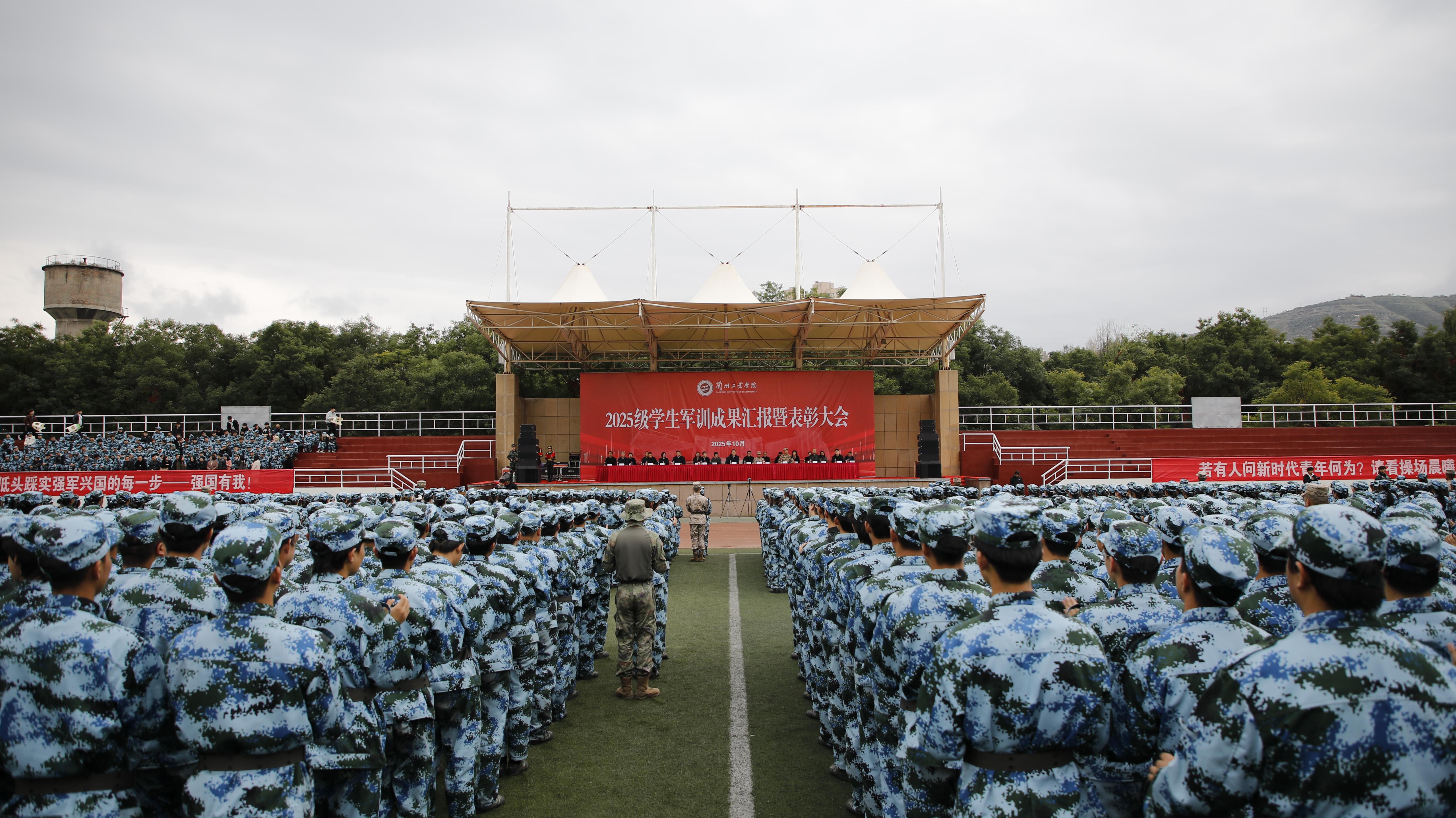 10月23日下午,学校在七里河校区田径场举行2025级学生军训成果汇报暨表彰大会。校党委书记白江平,党委副书记、校长刘新辉,副校长王佰成、马宏锋、罗均华,纪委书记、监察专员陈伟,党委委员、党委组织部部长贾魁出席大会,大会由副校长王佰成主持。