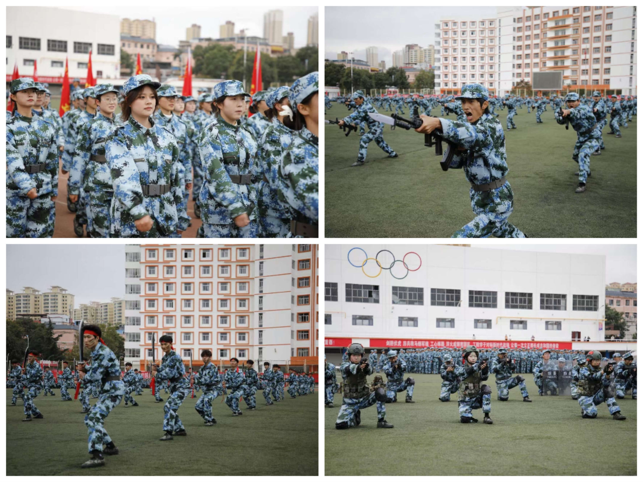 大会在庄严的国歌中拉开帷幕。随后,一场震撼人心的军训成果汇报精彩上演。分列式方阵步伐铿锵,特色科目汇报更是异彩纷呈。从虎虎生威的军体拳、刺杀操,到刚柔并济的匕首术、军舞;从气势磅礴的“抗日战争大刀阵”,到实战味浓的反恐防暴演练,一个个科目组成了一幅壮丽的青春画卷。汇报演出在《强军战歌》大合唱中圆满结束。