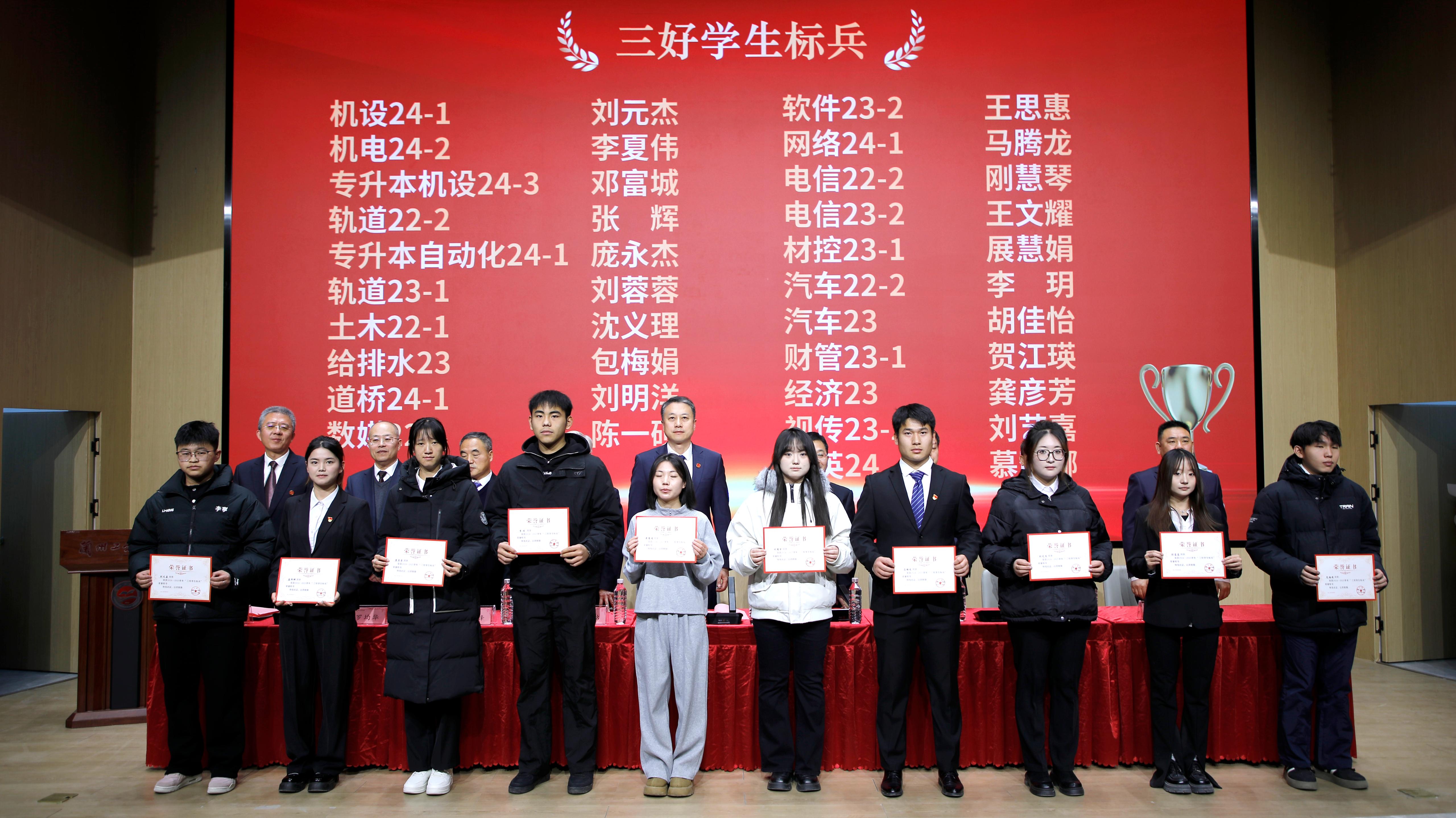 会上,与会校领导分别宣读了2024-2025学年各项表彰决定,表彰优良学风班、学生工作先进集体、共青团、学生会工作先进集体等多个类别的先进集体,以及三好学生标兵、三好学生、优秀学生干部、社会实践活动优秀个人、就业先进个人、双创之星等多个类别的先进个人。
